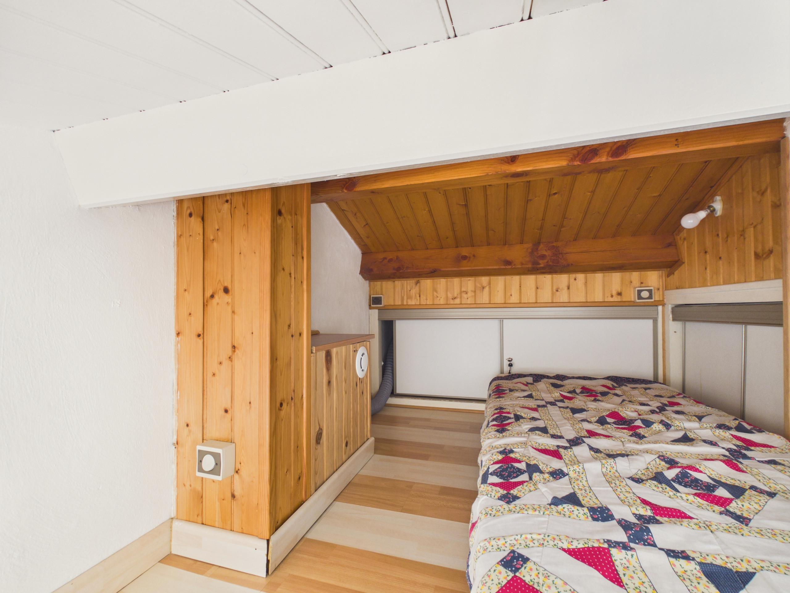 Une fois la nuit tombée, vous trouverez les deux premiers couchages en dépliant le canapé , puis une chambre au lit double sobrement décorée, qui vous attend pour une bonne nuit de sommeil. Cette dernière possède également une salle d'eau avec sèche-cheveux et lave-linge. Un wc indépendant est également disponible.