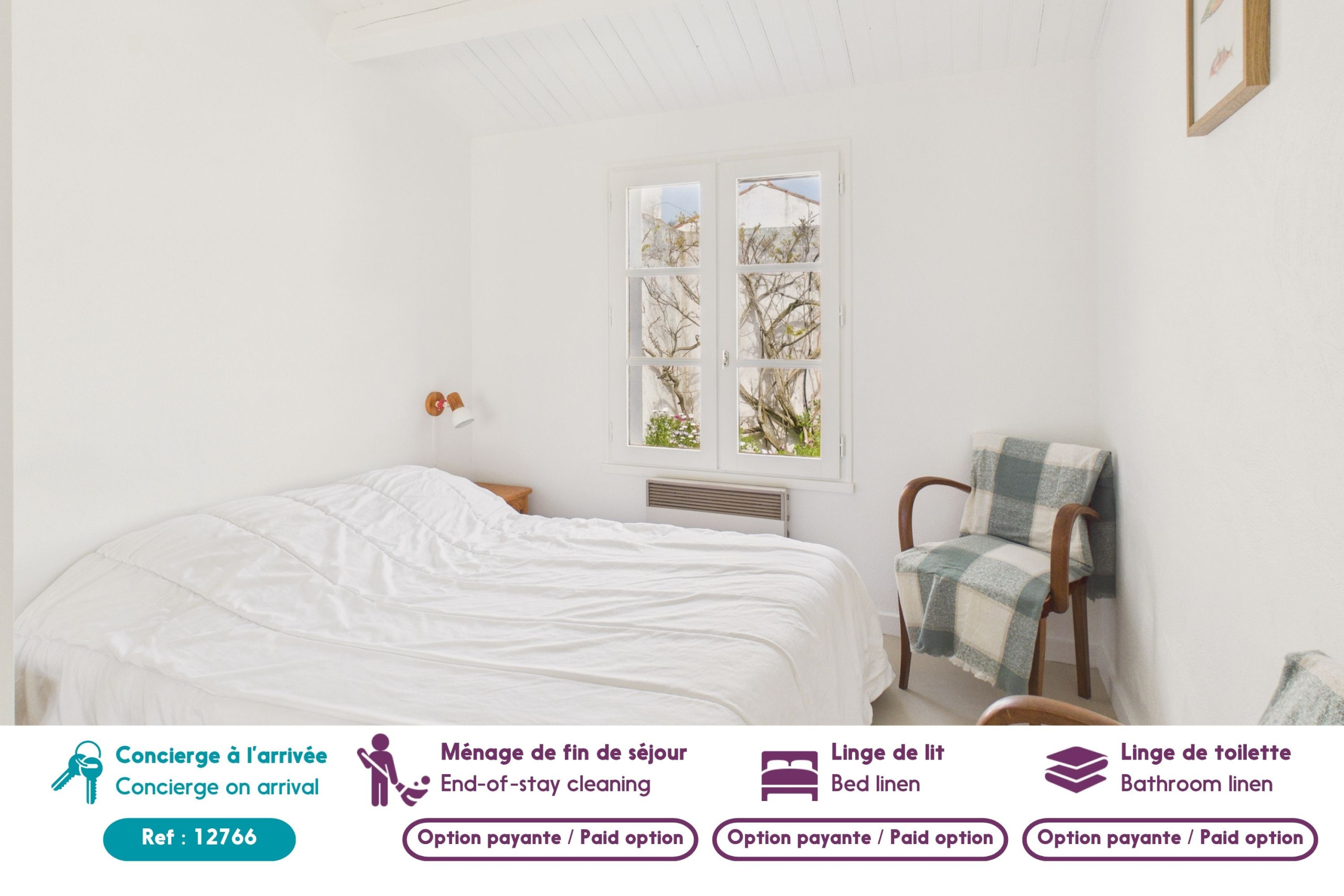 - Le linge de maison et le ménage de fin de séjour sont proposés en option, selon le confort souhaité.