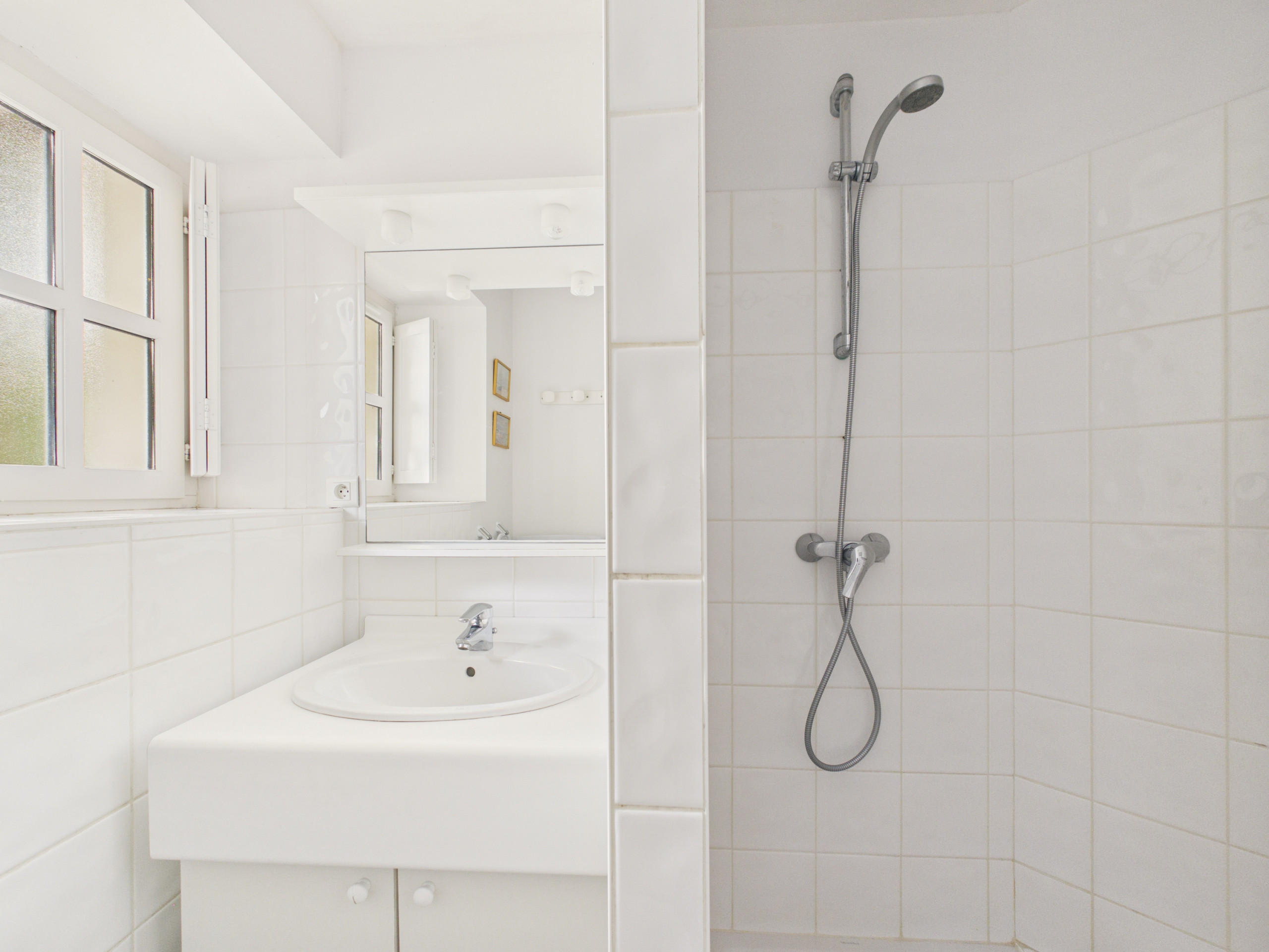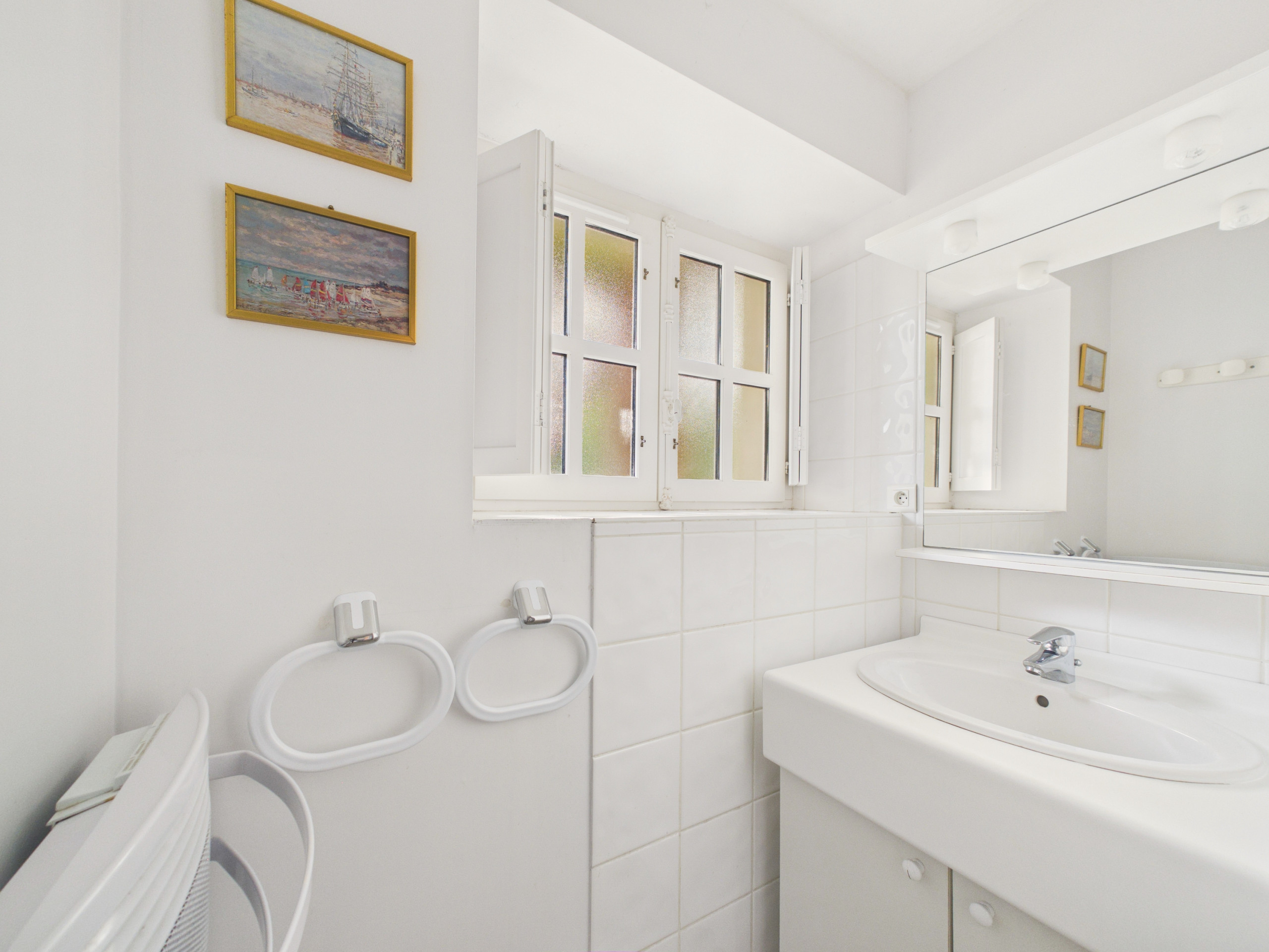 Enfin, la salle d’eau, avec douche à l’italienne, vasque, sèche-cheveux et wc, complète ce logement. Pour plus de confort, une machine à laver, un sèche-linge et un fer à repasser sont mis à votre disposition. Vous pouvez également profiter de son terrain de pétanque de sa place de parking sur la parcelle, et il est également possible de ranger vos vélos dans le garage.