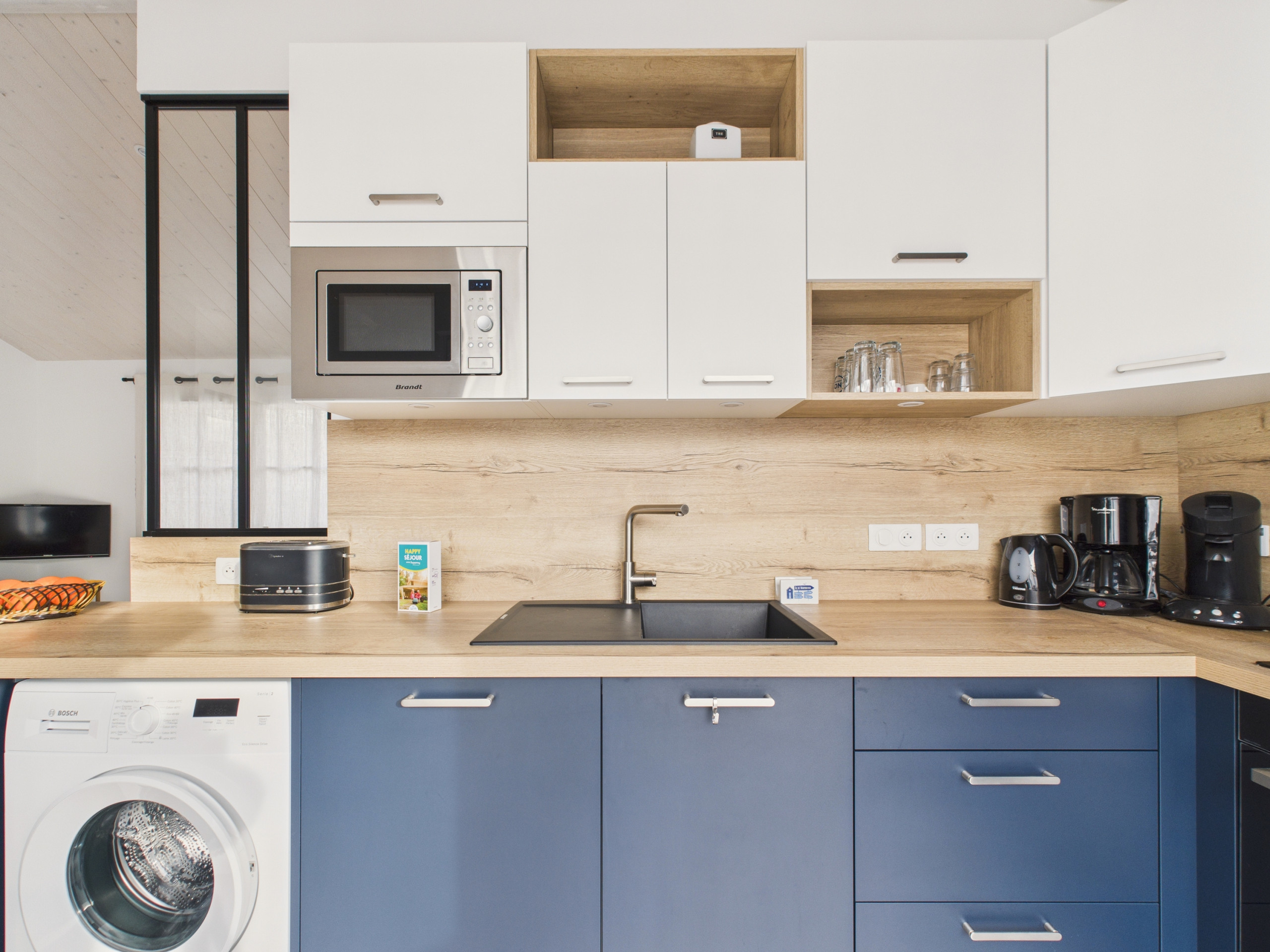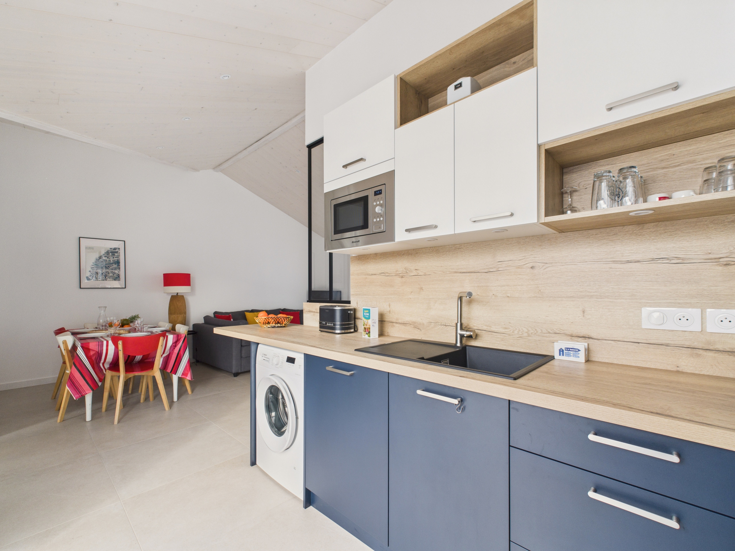 Vous trouverez au sein du bien une cuisine équipée d'une plaque à induction, d'un réfrigérateur, d'un combiné four - micro-ondes, d'un lave-vaisselle tout neuf, d'un lave-linge, d'une cafetière à piston et d'un grille-pain, de quoi préparez vos meilleures recettes. Vous pourrez déguster ces derniers dans la lumineuse et accueillante salle à manger, ou bien opter pour un repas au soleil sur la terrasse (15 m²).