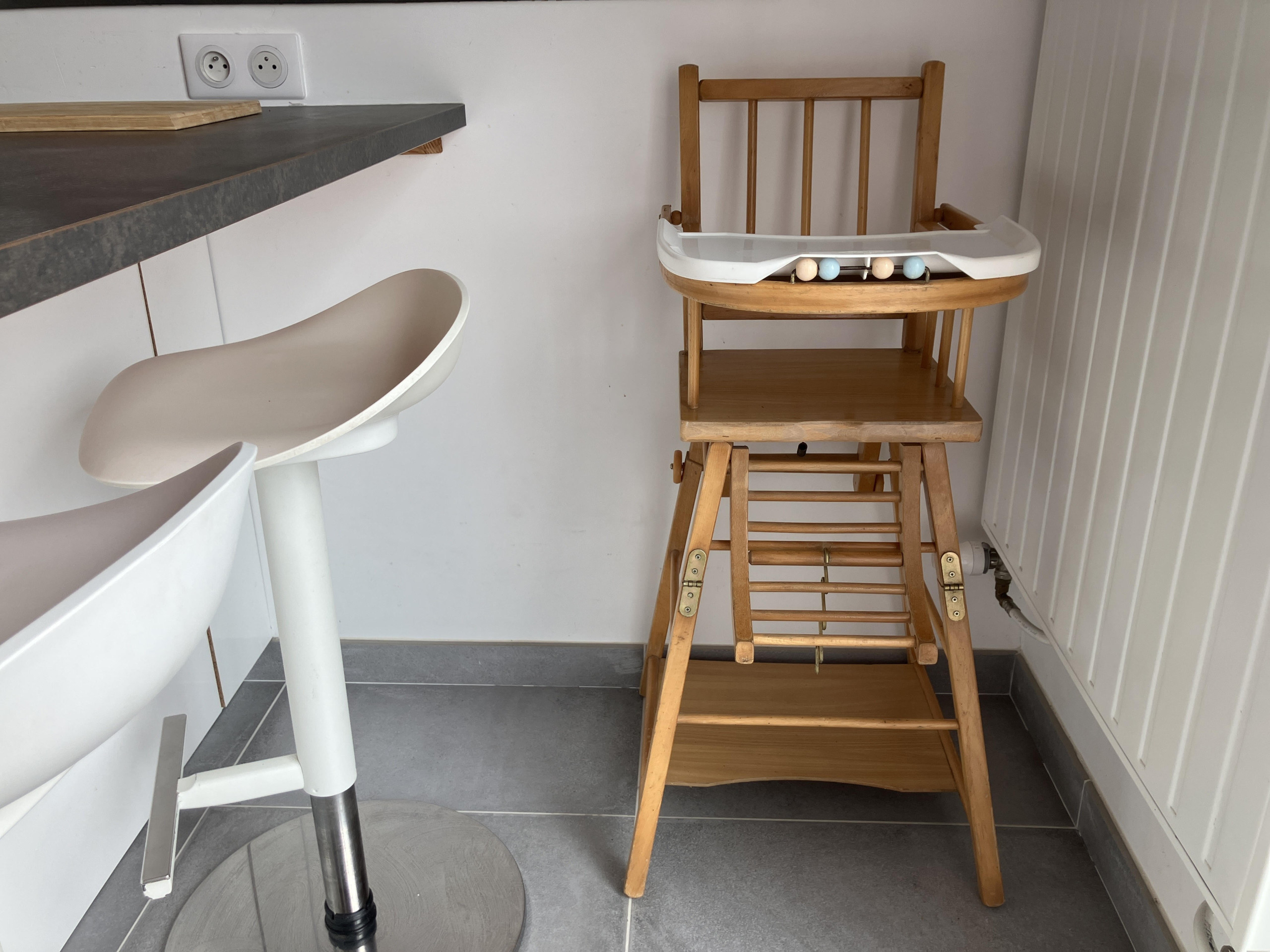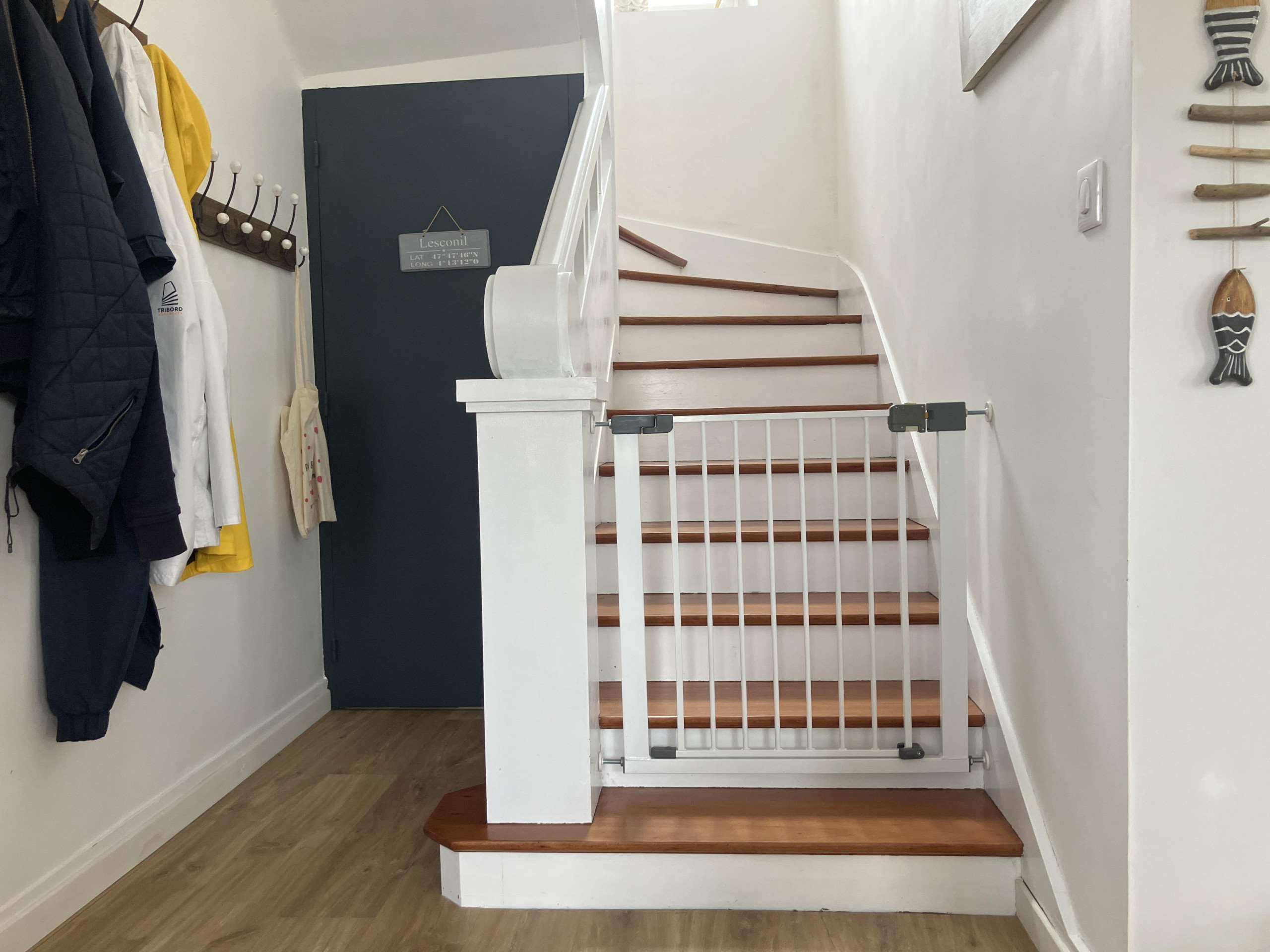Le logement dispose d'une chaise haute et l'escalier est équipé d'une barrière pour les jeunes enfants.