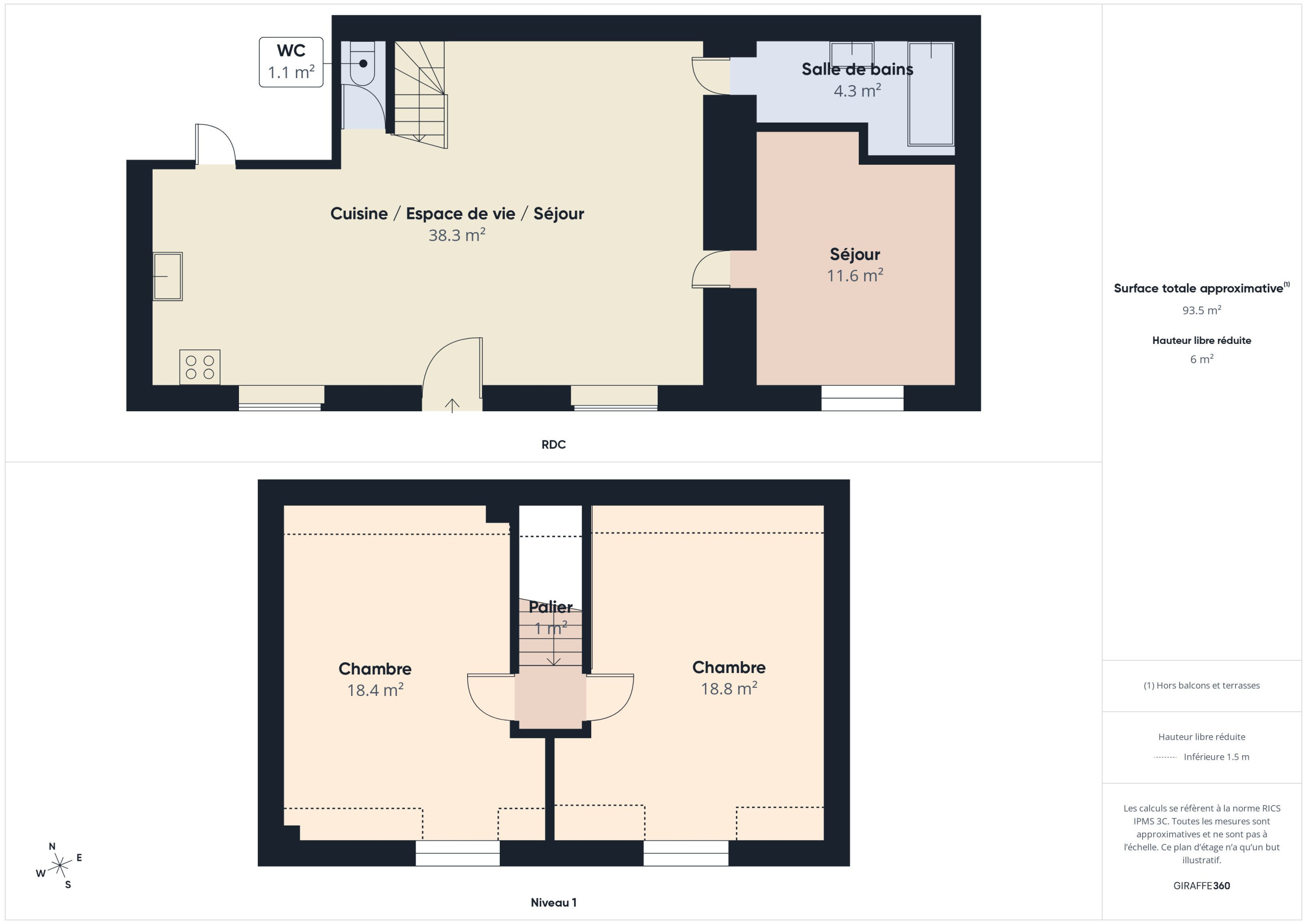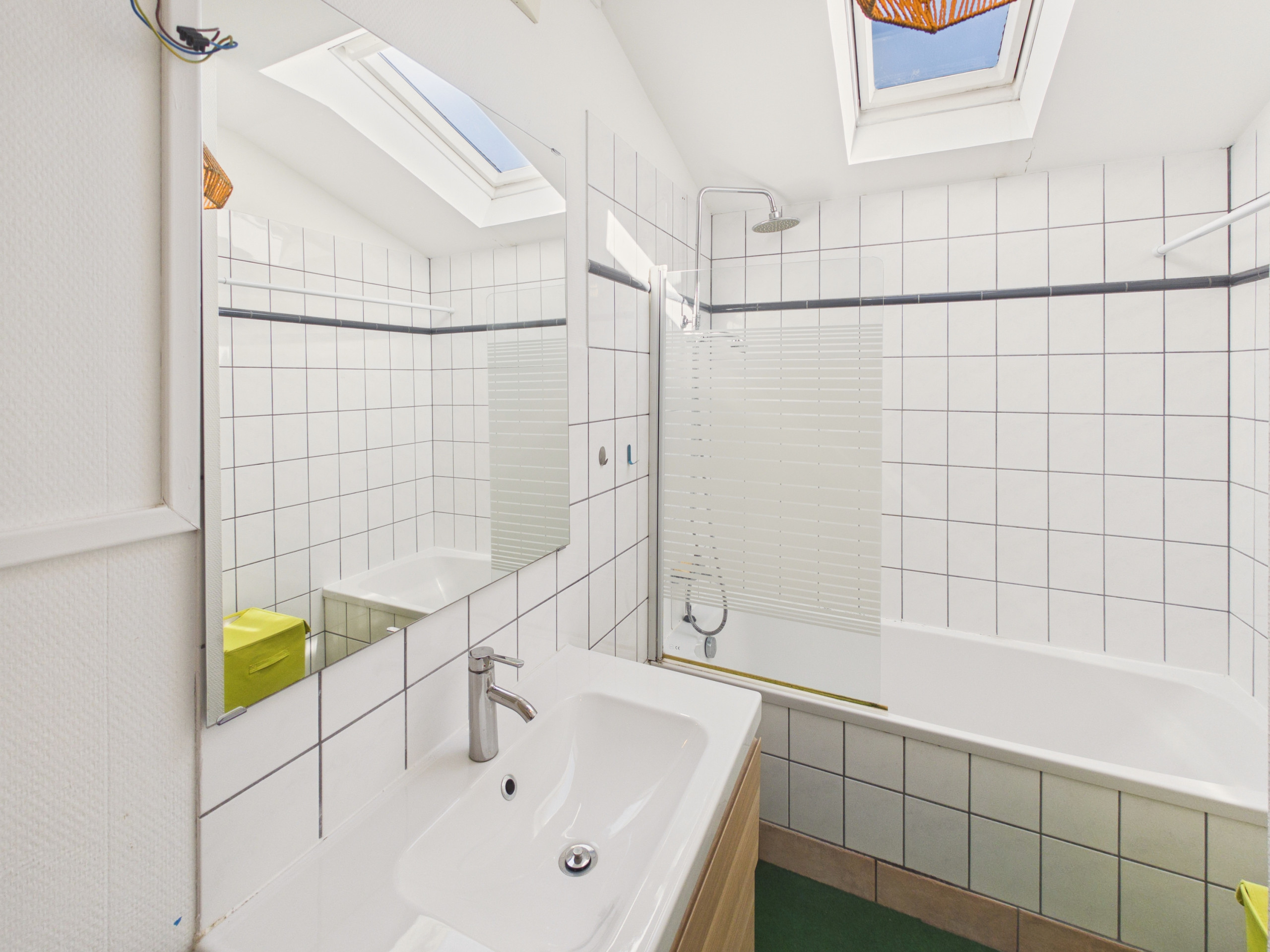 Une salle de bain avec baignoire se trouve au rez-de-chaussée ainsi qu’un WC indépendant.