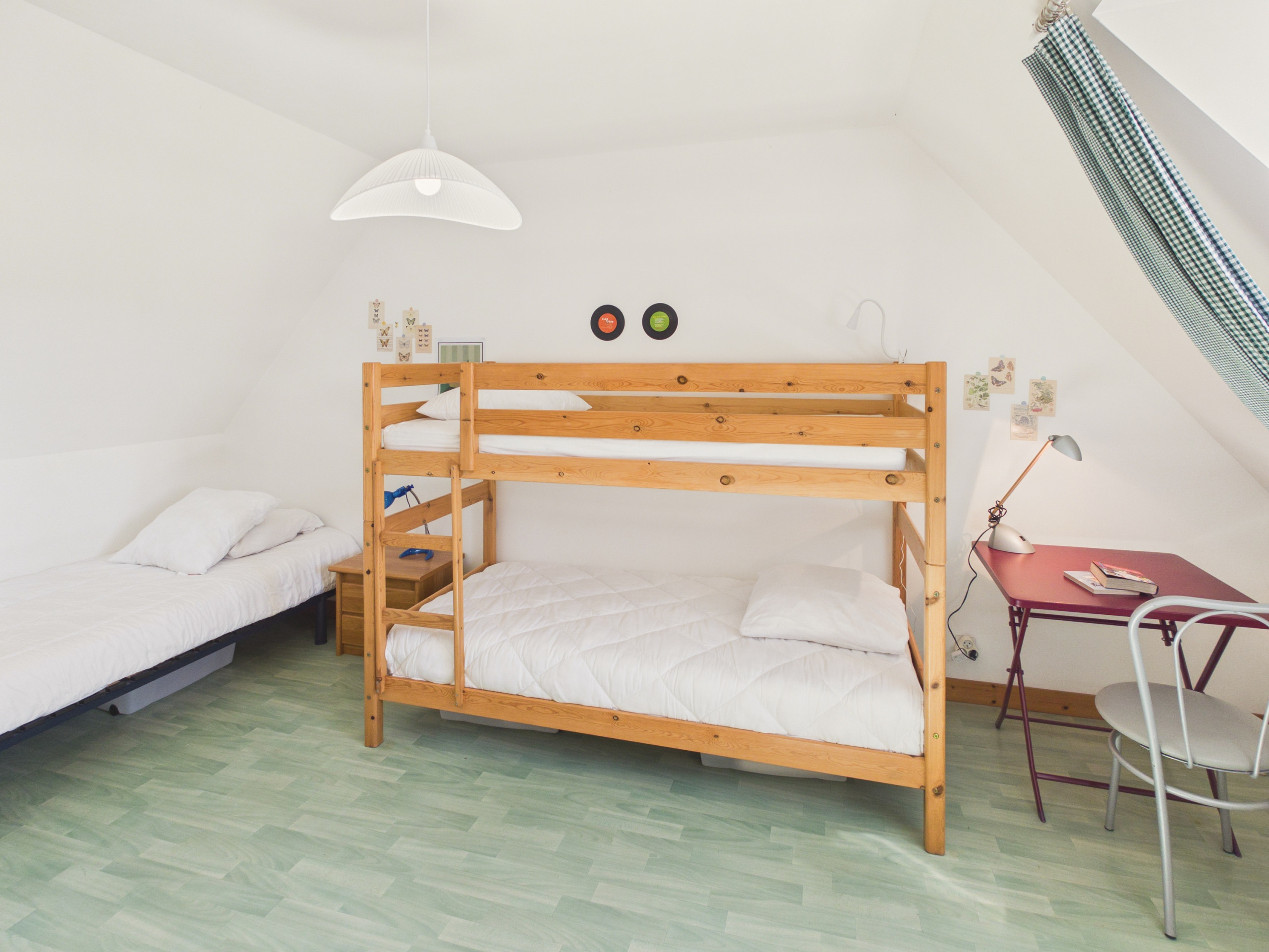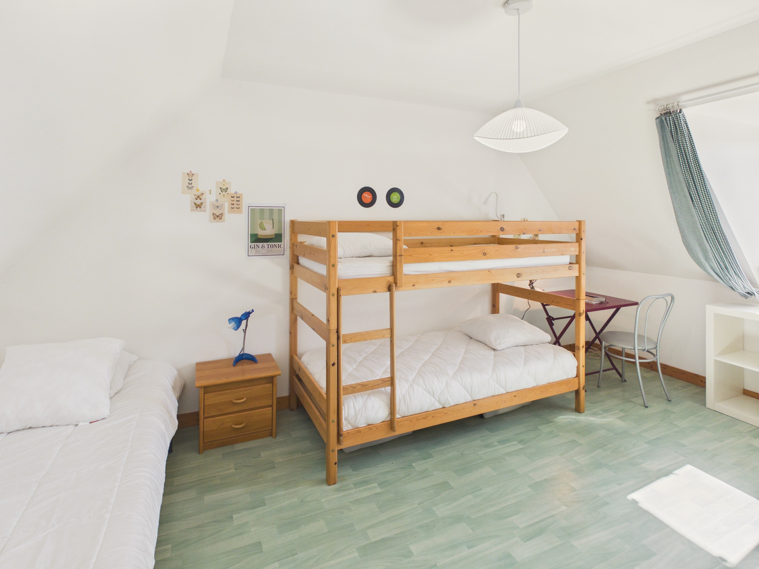 - Chambre 2 : un lit simple (90x190) et des lits superposés (90x190), idéale pour les enfants