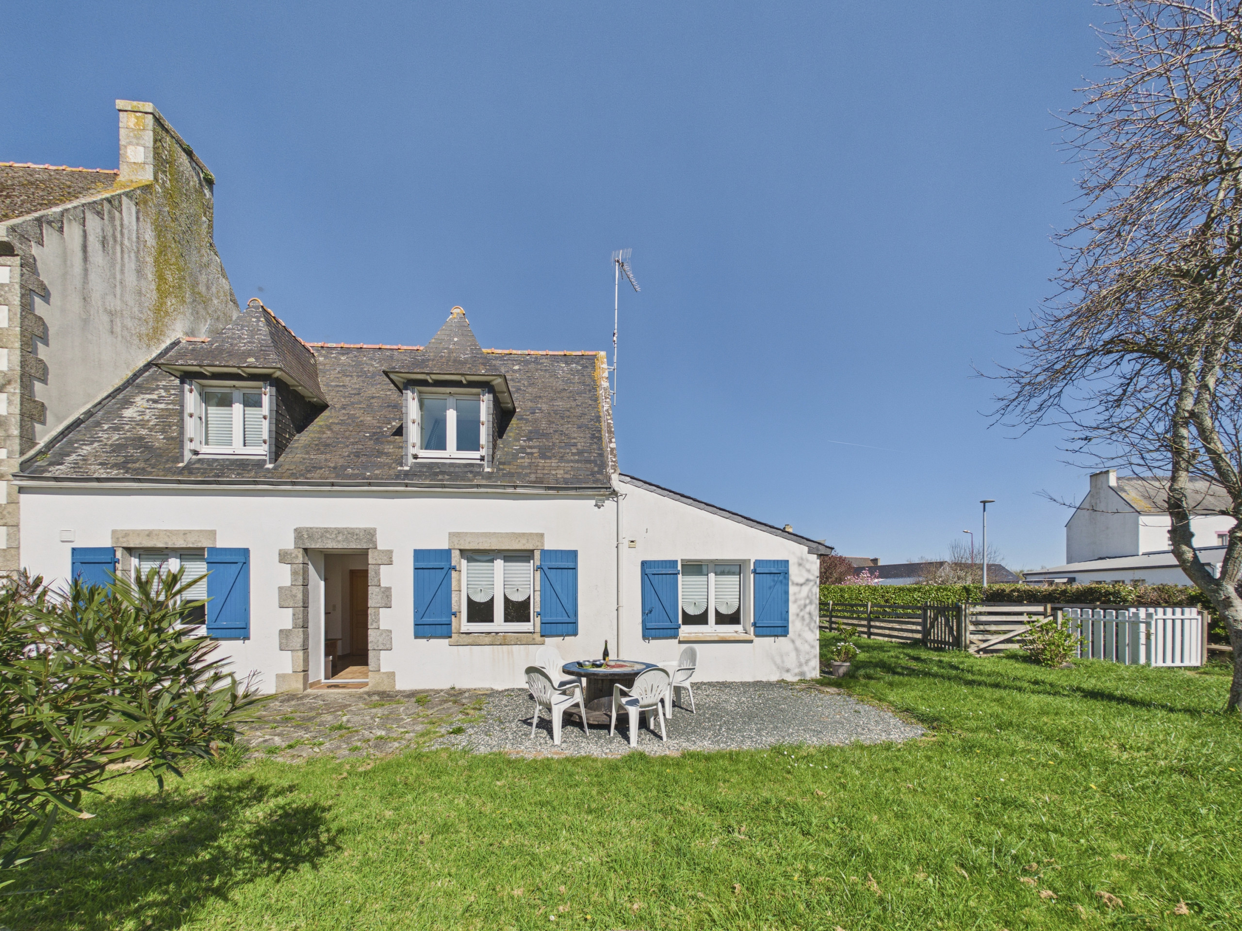 À l’extérieur, vous profiterez d’un jardin clos idéal pour laisser jouer les enfants en toute tranquillité. Le mobilier de jardin ainsi que la plancha vous permettront de partager de bons repas en plein air et de savourer pleinement les longues journées estivales.