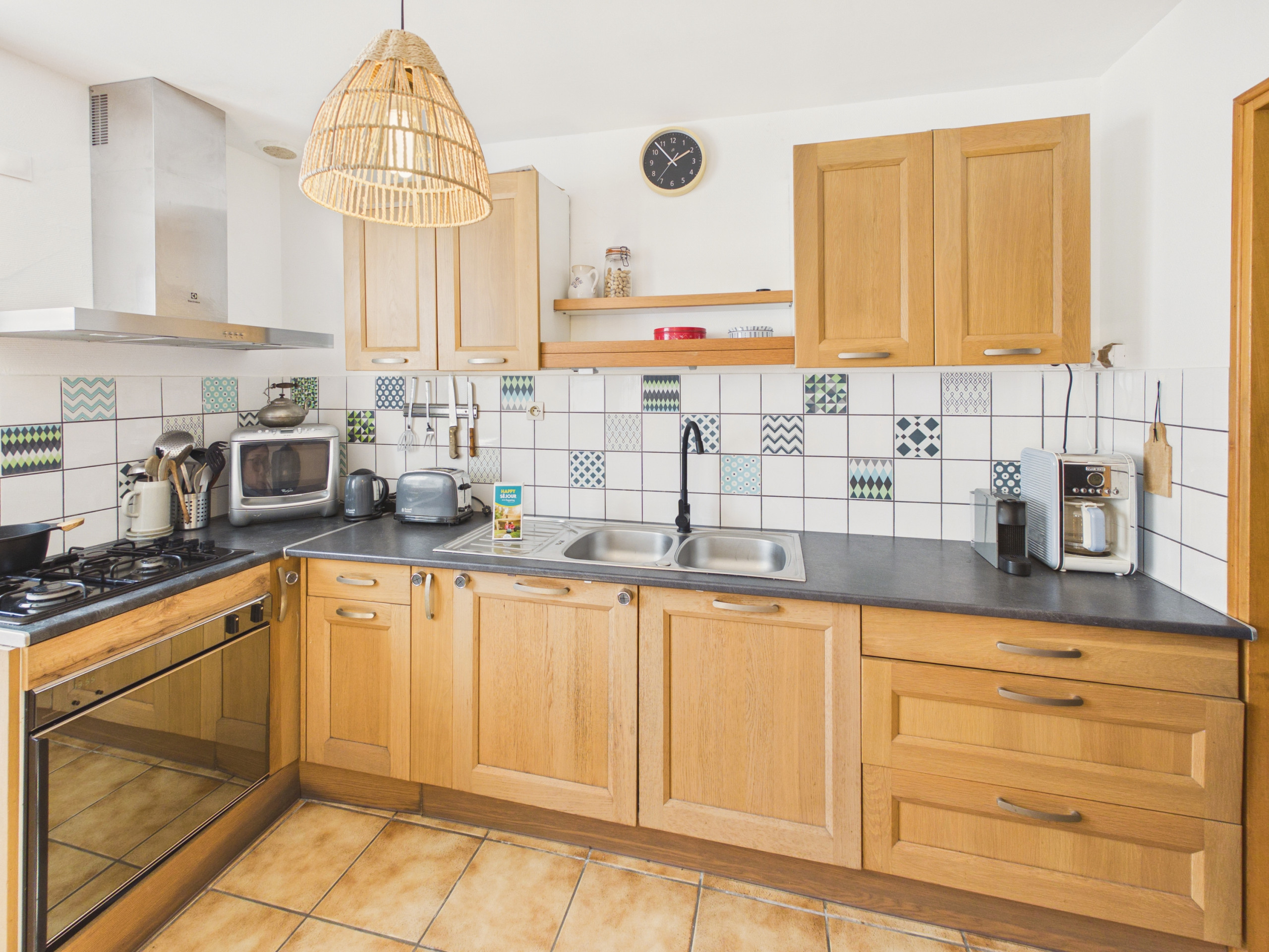 À l’intérieur, la maison s’ouvre sur une belle pièce de vie conviviale composée d’un salon avec deux canapés, d’un espace salle à manger avec une table ronde pouvant accueillir jusqu'à 5 personnes et d’une cuisine ouverte. Un second salon avec télévision offre un espace supplémentaire pour vous détendre après de longues journées de découvertes dans la région. La cuisine est entièrement équipée : plaque de cuisson à gaz, réfrigérateur, congélateur, four, micro-ondes, lave-vaisselle, cafetière filtre et Nespresso, grille-pain, bouilloire et tout le nécessaire pour cuisiner comme à la maison. Une arrière-cuisine vient compléter cet espace fonctionnel.