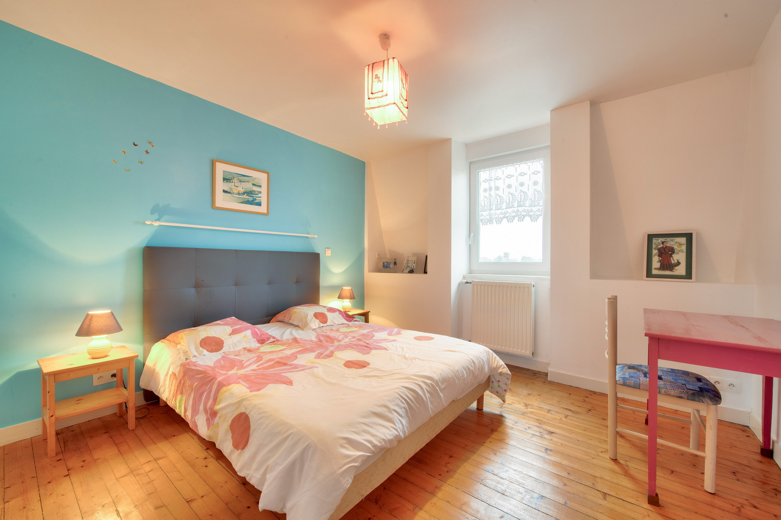 À l’étage, vous découvrirez deux chambres, chacune équipée d’un lit double (140x190), ainsi qu’une chambre enfant avec deux lits simples (90x190). Dès le réveil, en ouvrant les volets, vous profiterez d'une vue à 180 degrés sur l'Aber Wrac'h !