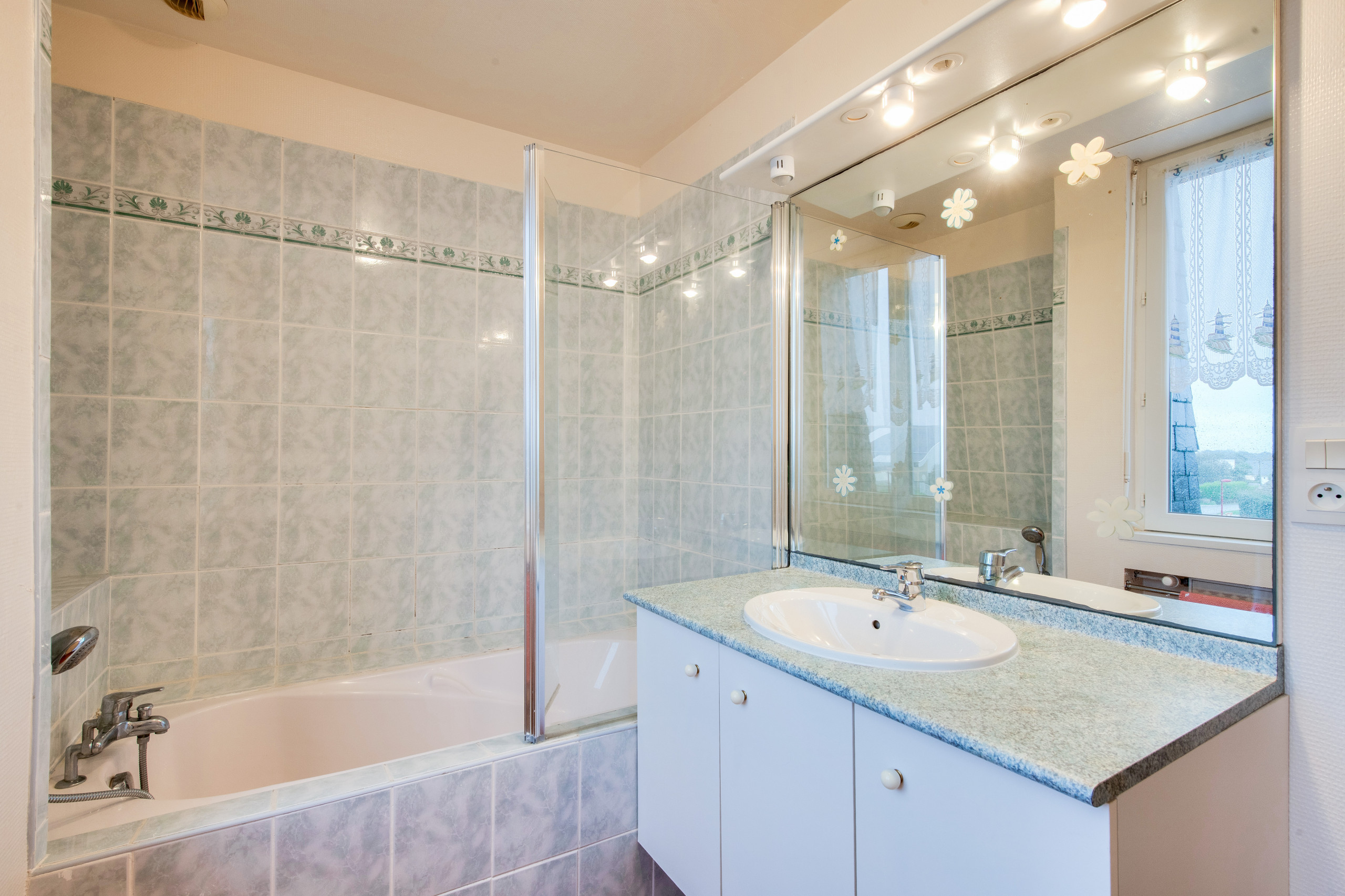Côté salle de bain, vous trouverez au rez-de-chaussée une salle d’eau avec douche ainsi qu’un WC indépendant. À l’étage, une seconde salle de bain équipée d’une baignoire et de WC est à votre disposition.