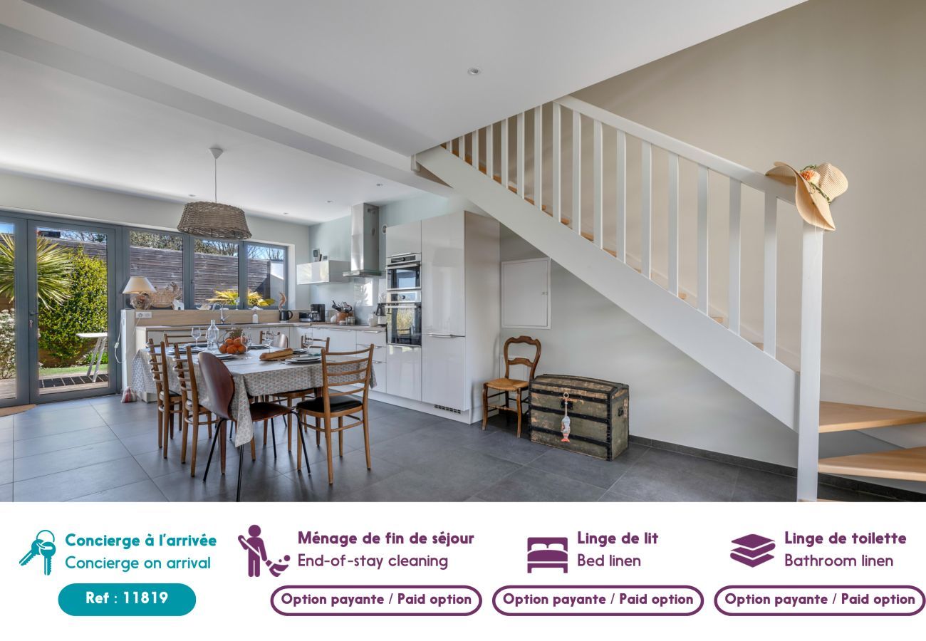 Cette maison à Pornichet est l'endroit parfait pour partager de bons moments en famille ou entre amis. Son espace extérieur est sans nul doute un atout pour profiter du beau temps et de l'air marin. À l'intérieur, vous trouverez une cuisine moderne et entièrement équipée avec une plaque à induction, un réfrigérateur, un micro-ondes, un four, un congélateur, un lave-vaisselle, une cafetière, un grille-pain et une bouilloire, afin que vous puissiez concocter de délicieux repas. Ensuite, vous aimerez vous réunir autour de la table de la salle à manger pour y partager des repas conviviaux.