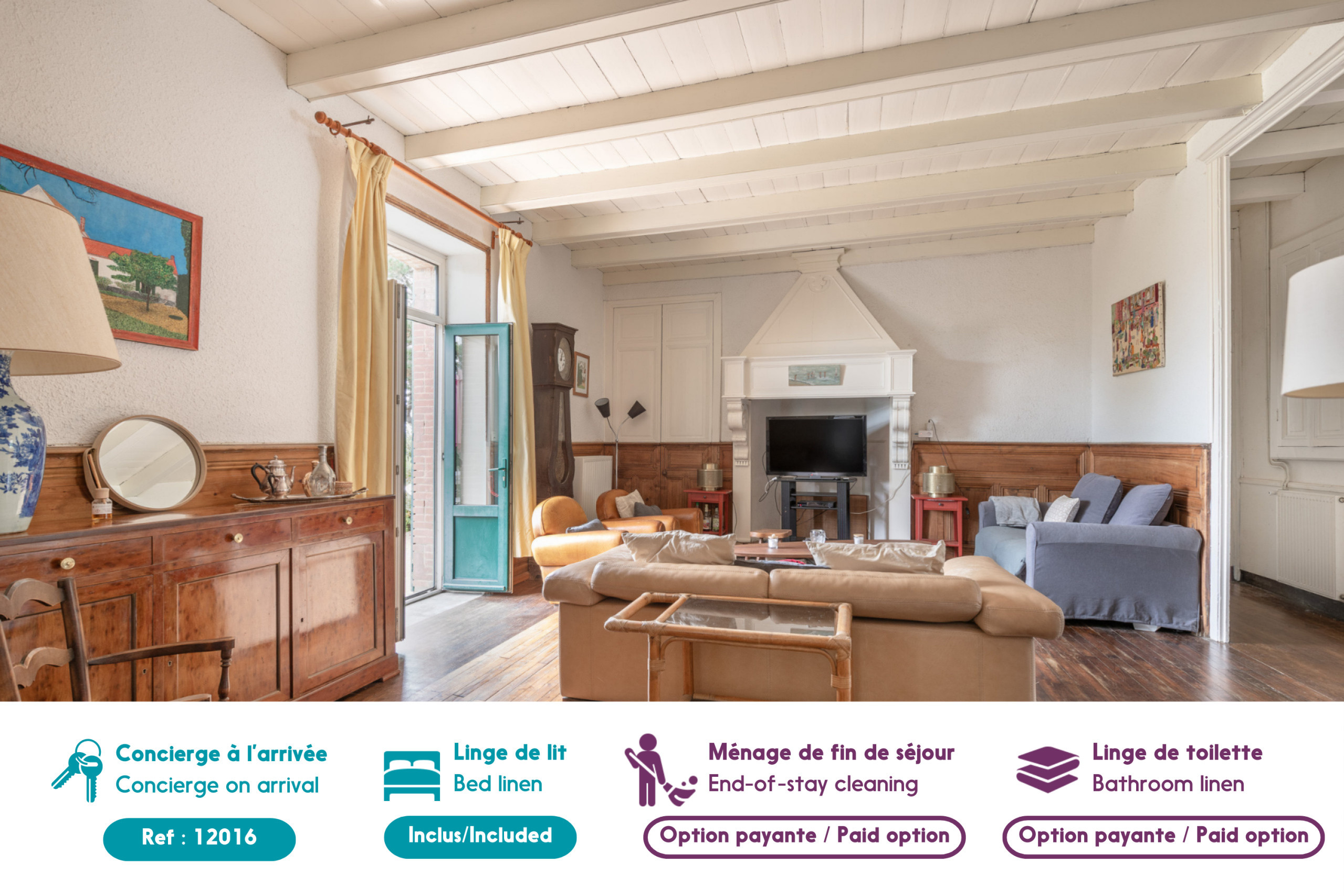 Cette location bénéficie d'un service de conciergerie disponible tout le long de votre séjour pour des services personnalisés sur une ou plusieurs destinations. Durant le séjour, il n'y aura pas de renouvellement du linge de maison, ni de ménage.