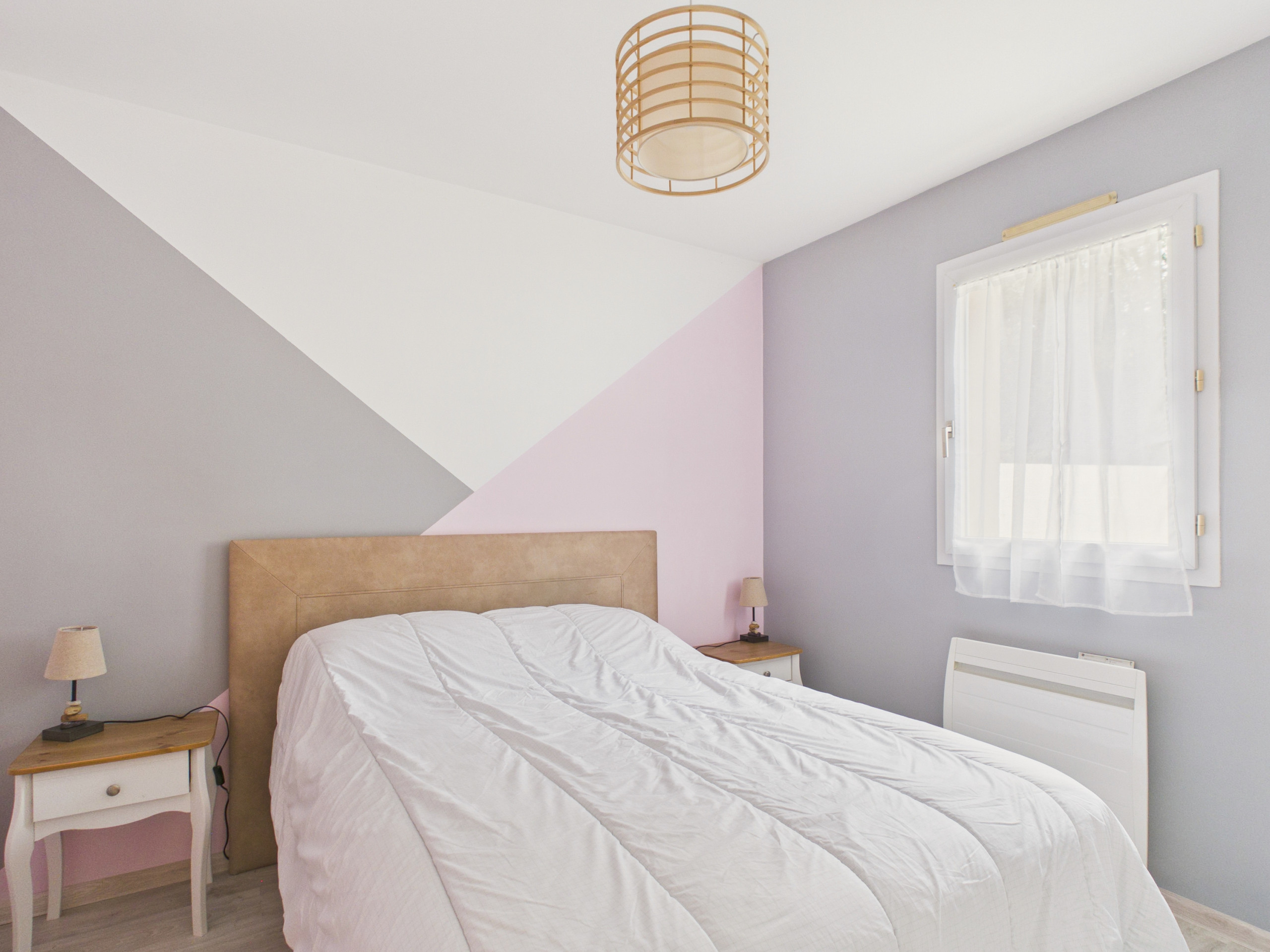 Après une longue journée de visite de la région vendéenne, vous aimerez vous reposer dans l'une des trois chambres de la maison, toutes les trois équipées d'un lit double (140x190). La première chambre présente des formes géométriques et des couleurs bleutées, tandis que les deux autres offre des tons plus doux.