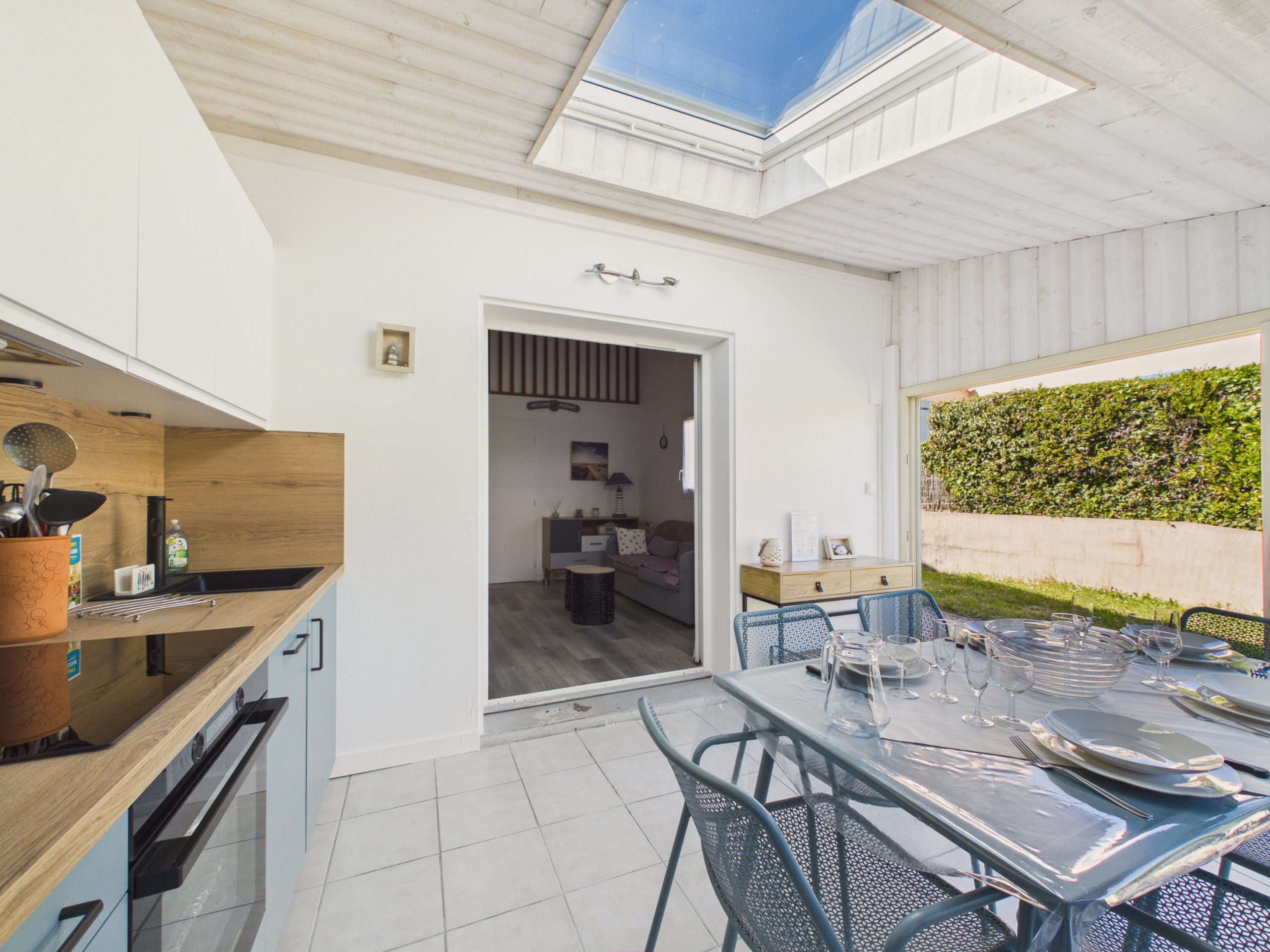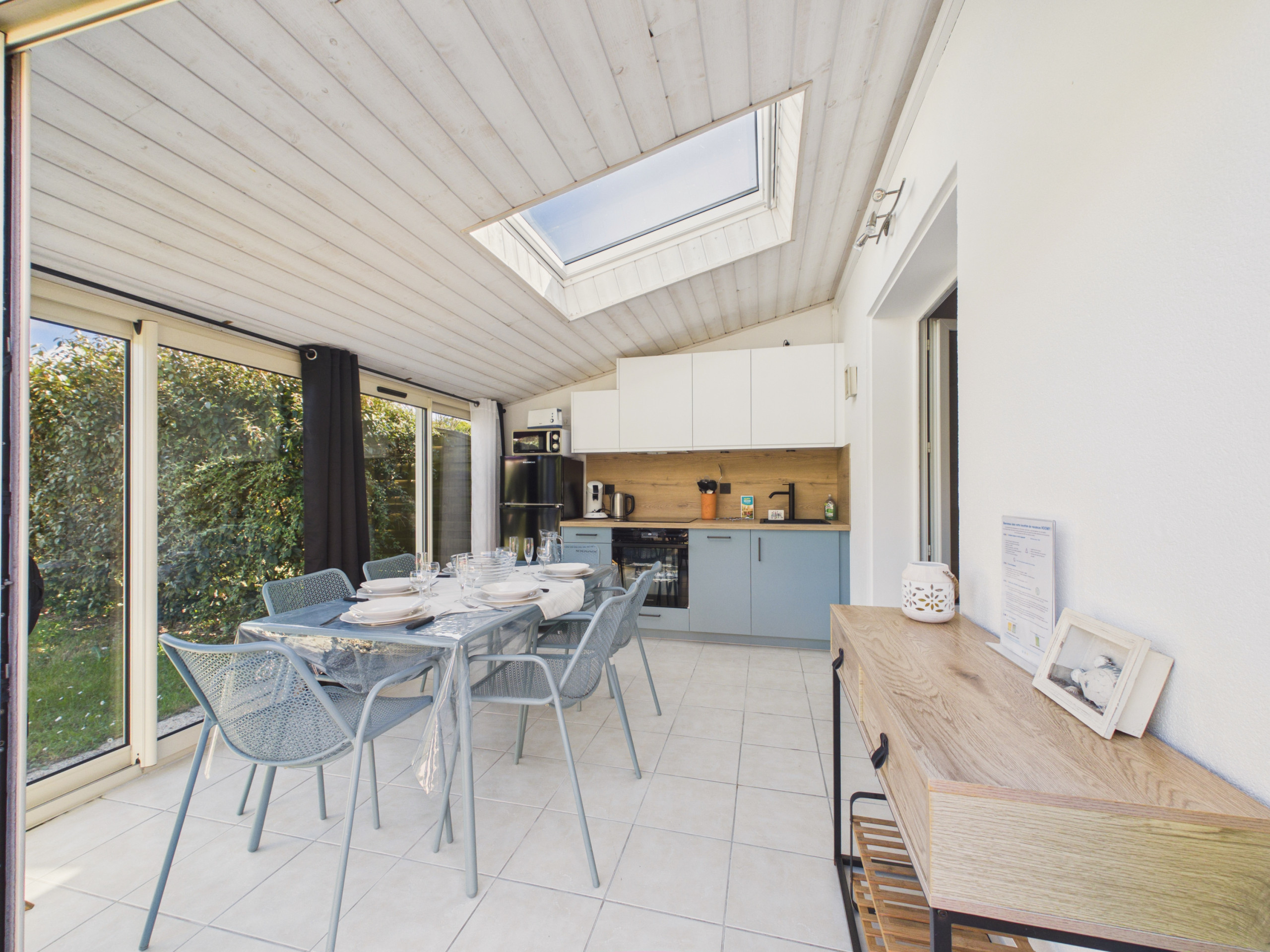 Le logement se compose d’une véranda / salle à manger, d’un salon TV avec cuisine équipée de tout l'électroménager nécessaire pour que vous vous sentiez comme chez vous : double plaque induction, hotte, four, micro-ondes, cafetière à filtre et Senseo, grille-pain, bouilloire. Côté nuit, vous disposerez d’une chambre double (140), d’une chambre triple avec lit superposé double (2 x 140) et d’une salle d’eau avec WC.