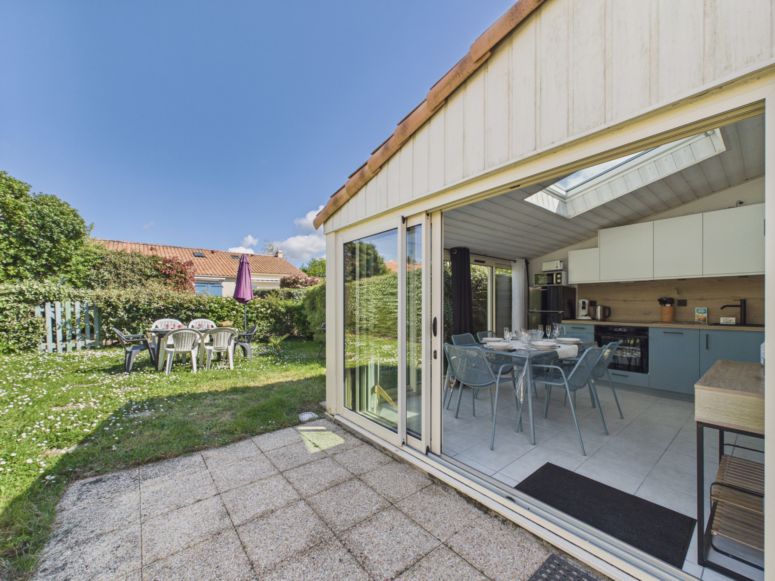 Cette maison rénovée de 50 m² et son jardin clos et sécurisé de 250 m² se situent dans le quartier calme et résidentiel de la Roussellerie, à seulement 500 m de la plage des Dunes, de la grande plage de la Roussellerie ainsi que de la forêt de la Pierre Attelée. Elle dispose de 2 chambres pouvant accueillir 4 adultes et 1 enfant.