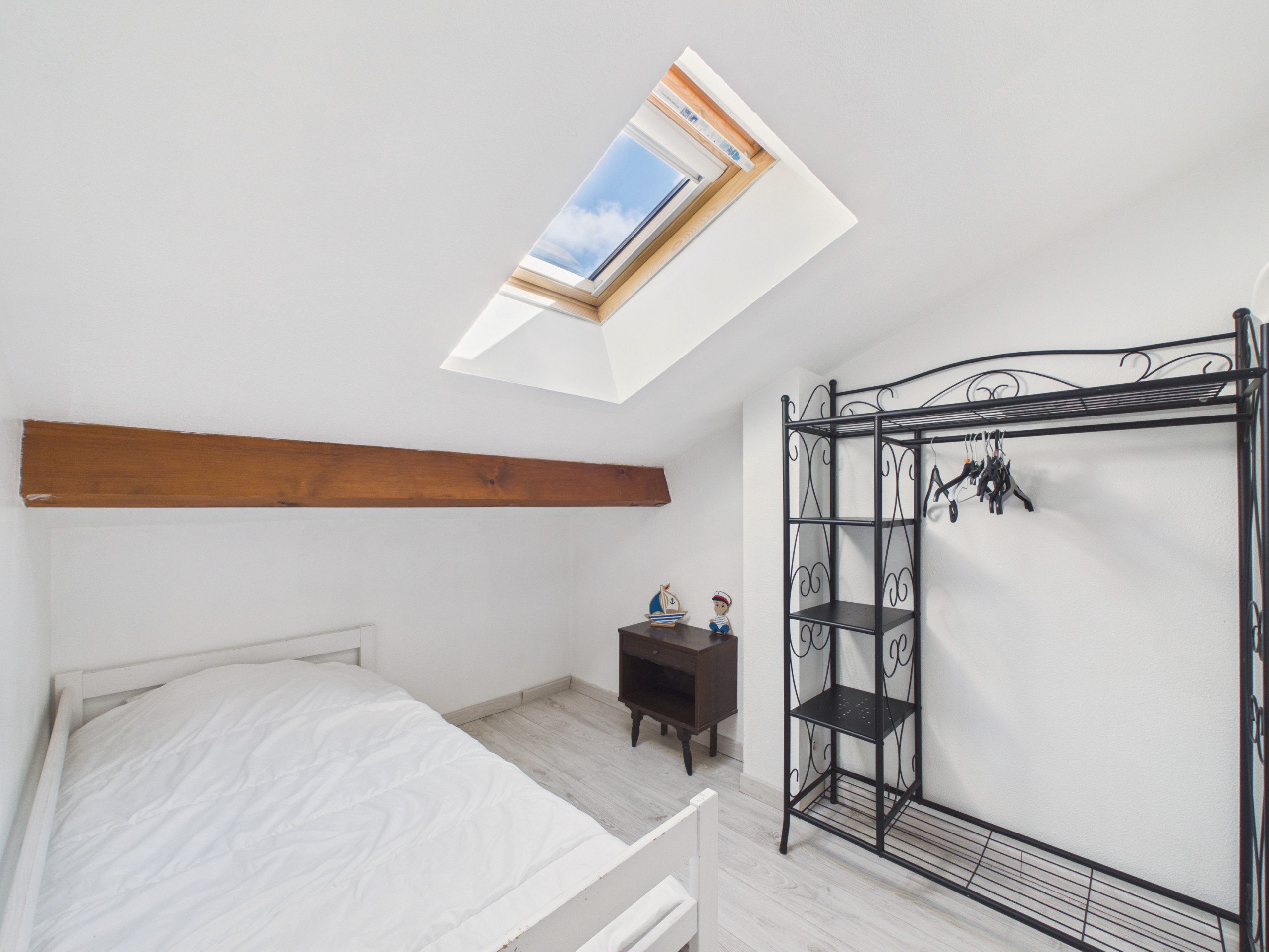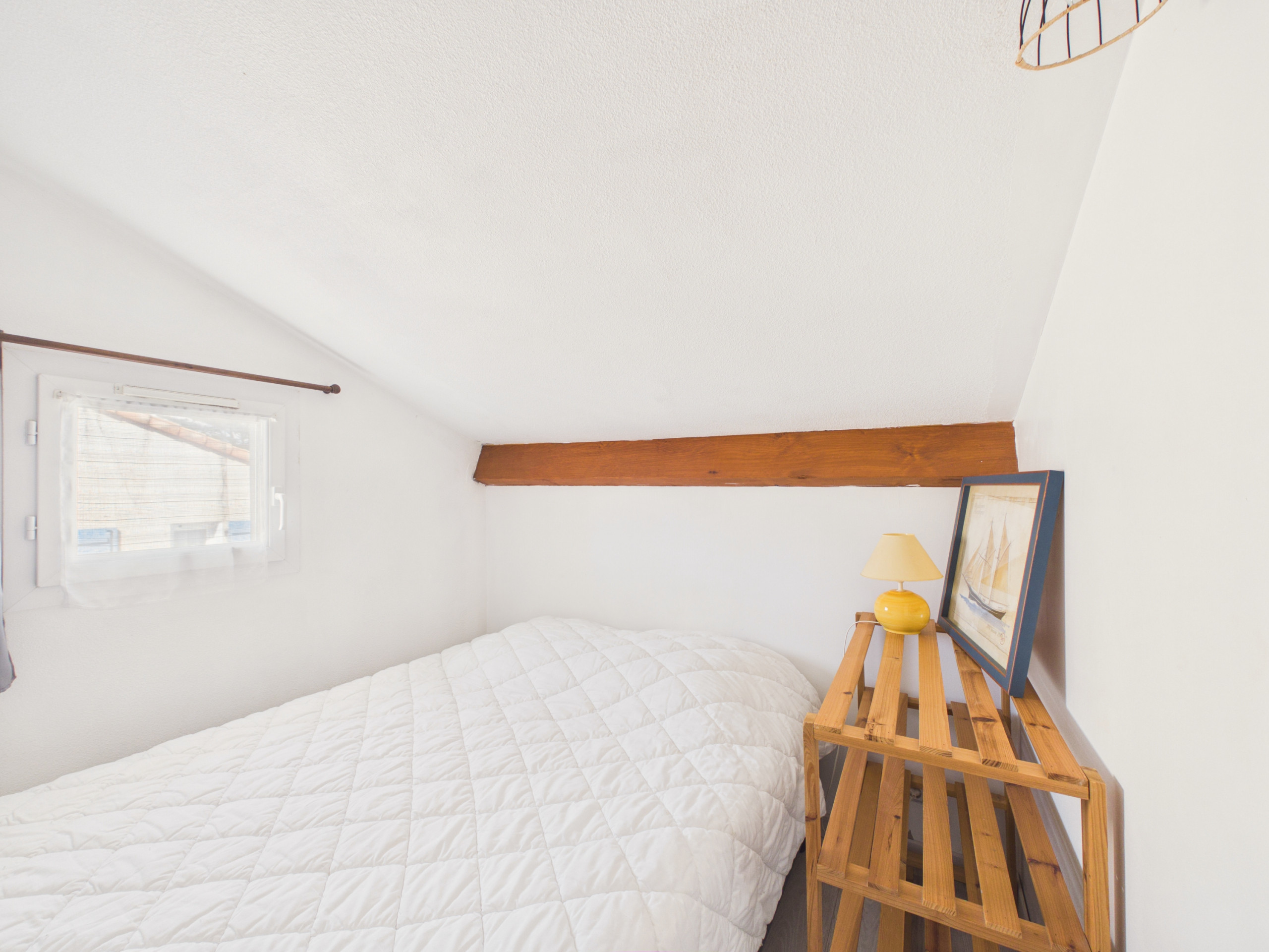 Côté nuit, vous profiterez d’une chambre avec un lit double (140x190) et d’une chambre avec un lit double et un lit simple (140x190 et 80x190). Une salle d’eau avec douche à l’italienne et un WC indépendant complètent la maison.