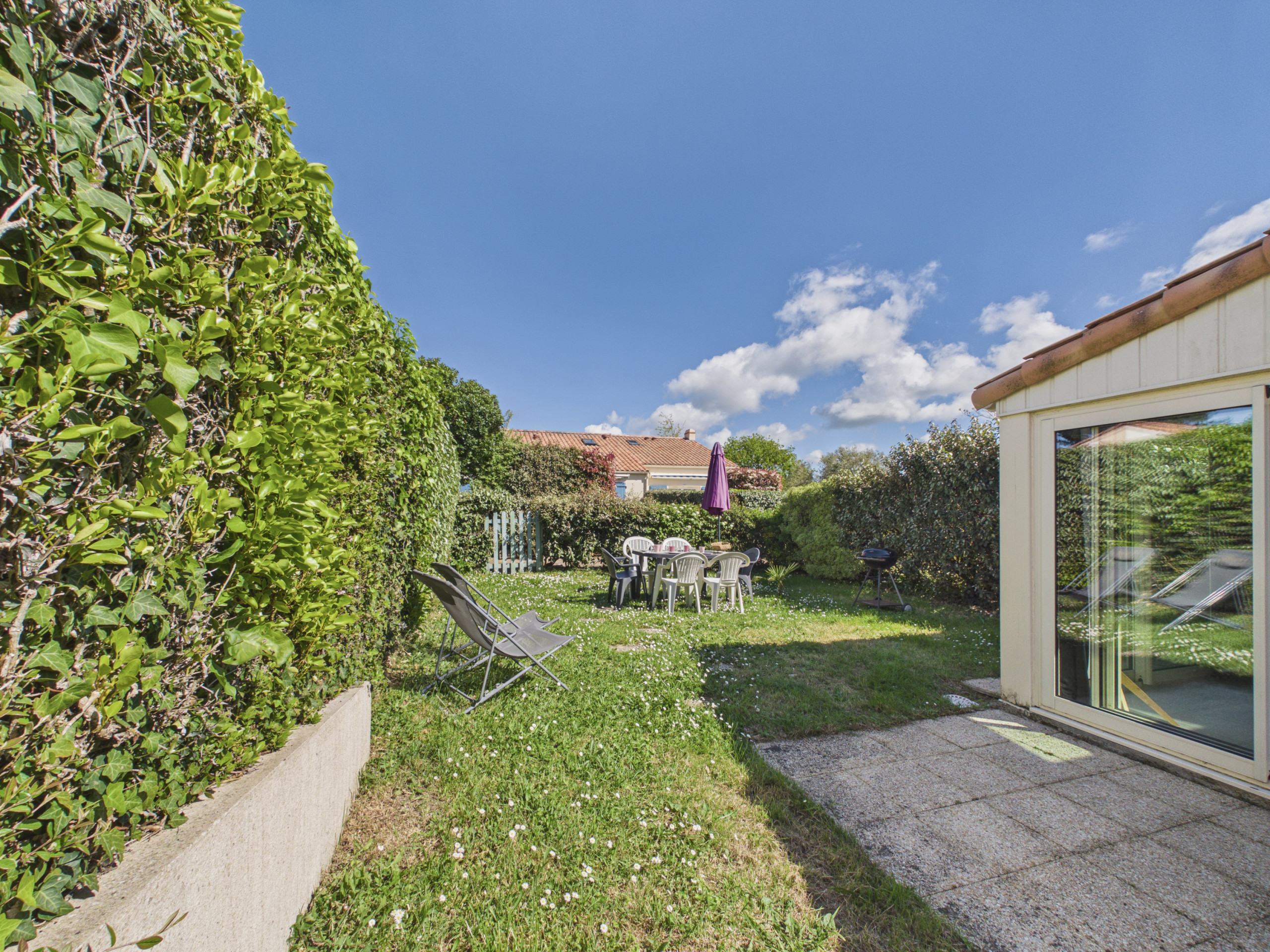 Pour un maximum de confort, la maison dispose également d'un lave-linge, un fer et une planche à repasser, un salon de jardin, un barbecue charbon et quelques transats. Vous pourrez garer gratuitement jusqu’à trois voitures sur le terrain clos et sécuriser vos vélos dans le garage de la maison (jusqu'à 5 vélos).