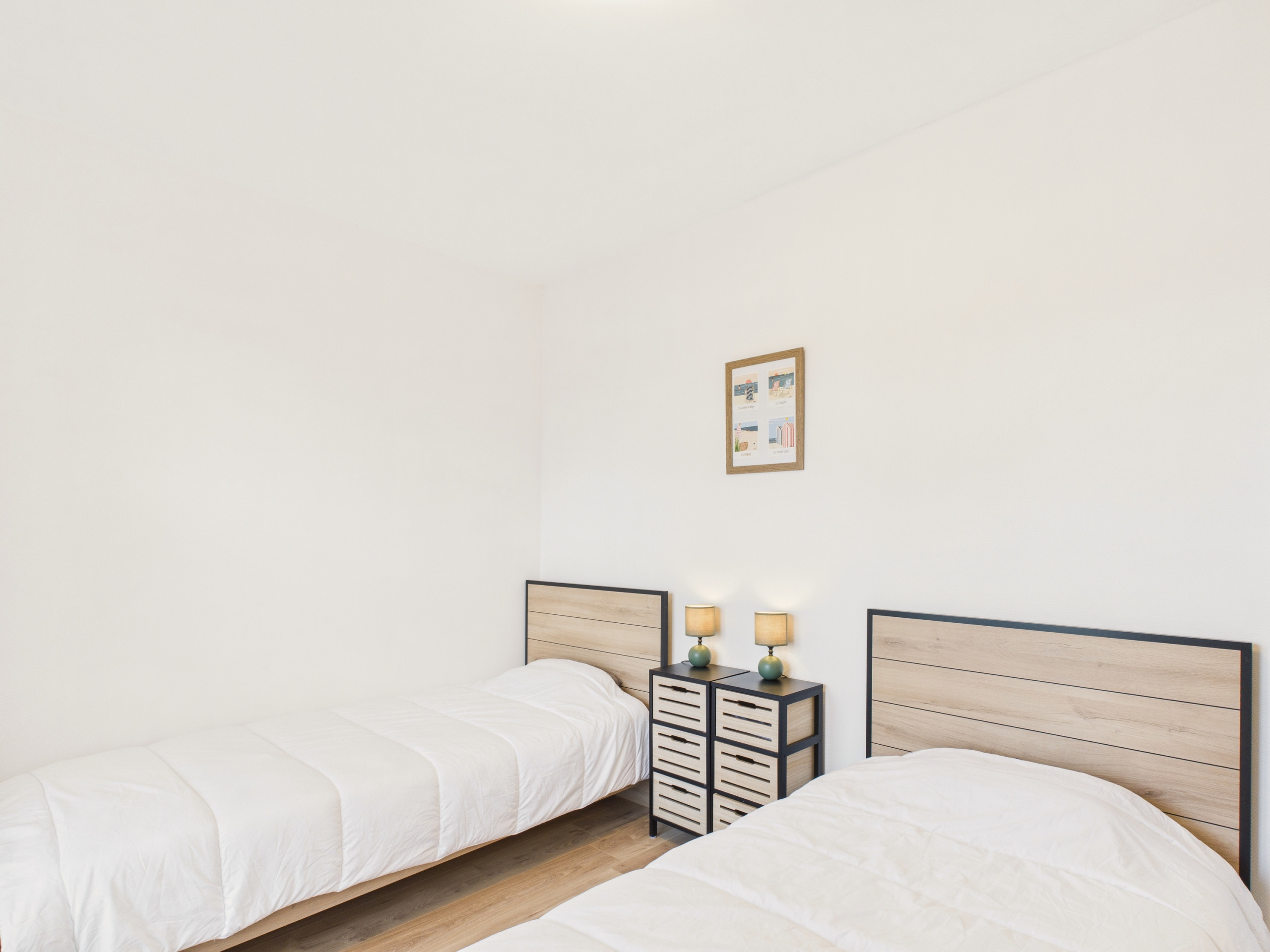 Vous accéderez ensuite aux espaces nuit, avec une première chambre équipée d’un lit double (140x190), une seconde avec un lit double (140x190) et un lit simple (90x190), et une dernière avec deux lits simples (90x190).