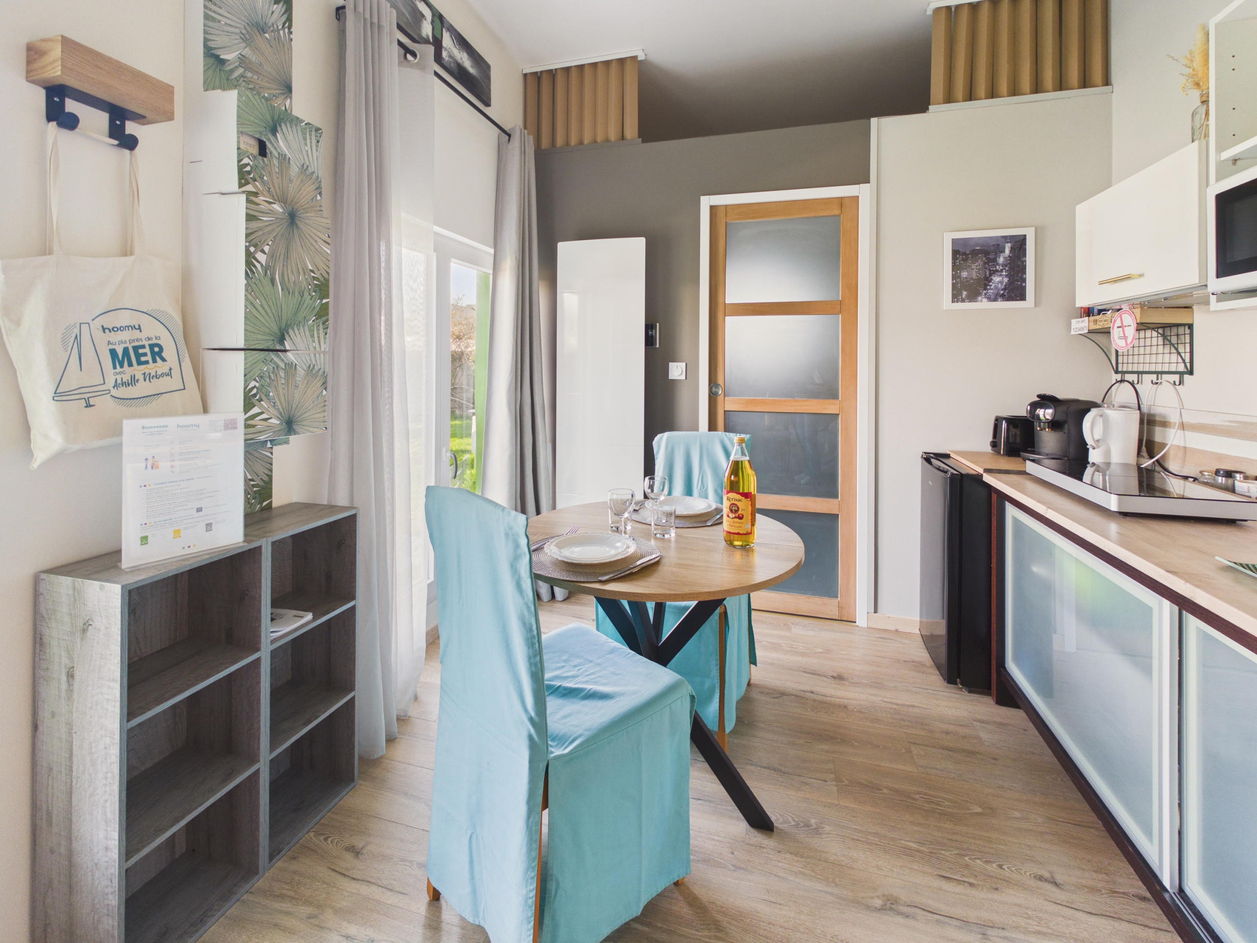 À l’intérieur, découvrez une belle pièce de vie fonctionnelle et chaleureuse. La cuisine, entièrement équipée (plaques à induction, four, micro-ondes, réfrigérateur), vous permet de préparer vos repas comme à la maison. Pour vos petits-déjeuners, vous disposerez également d’un grille-pain, d’une bouilloire et d’une cafetière Nespresso. Pour manger, vous aurez le choix entre la table à manger intérieure ou extérieure dans le jardin.